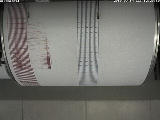 Сейсмограф в реальном времени в Muntele Rosu(1 оборот барабана = 15 минутам) - Ссылка