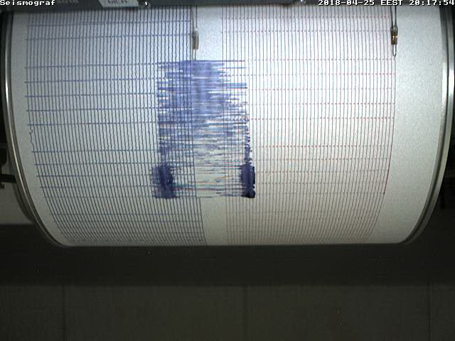 Сейсмограф в реальном времени в Muntele Rosu(1 оборот барабана = 15 минутам) - Ссылка